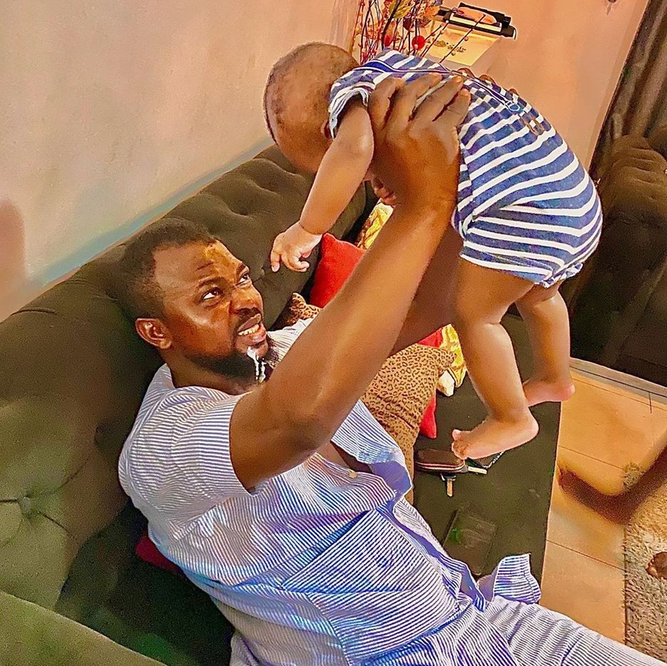 Popular Nollywood Actress, Toyin Abraham is currently enjoying motherhood as she recently took to her social media page to narrate a special scenario that took place between her child and the child’s father. Toyin Abraham was amazed today seeing her son, Ire, vomit on his father. sharing the photo on her Instagram page, she wrote ;