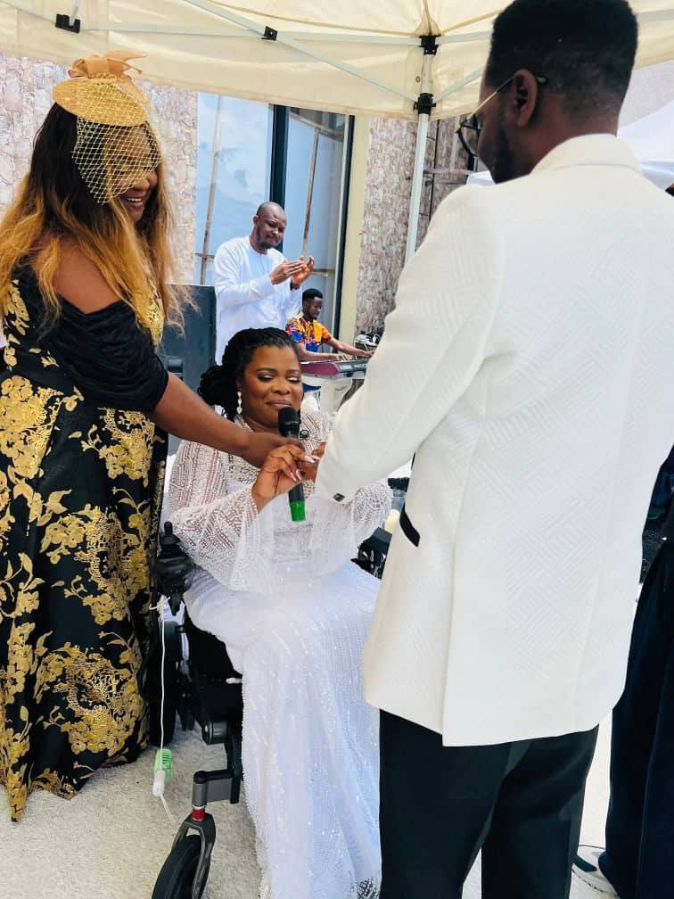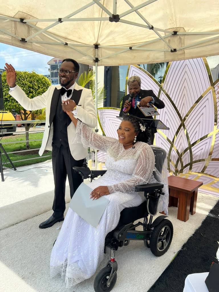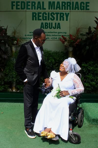 A mobility-challenged Nigerian woman, Grace Alache Jerry, got married to her longtime lover, IB Kings Ibrahim Mshelia. Their white wedding was held on Saturday, October 4, 2025, while they had their civil wedding in Abuja on August 7. The disability activist singer and fellow of the Mandela Washington Fellowship for Young African Leaders has been confined to a wheelchair for 23 years. Grace had revealed in an interview that she was not born with a disability. “I was involved in a road accident in 2002, and after that, I sustained a spinal injury,” she said.