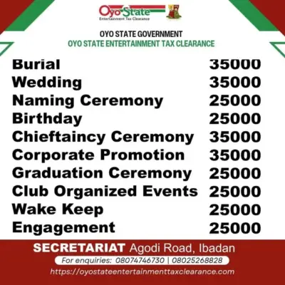 The Oyo State Government has denied online reports claiming it plans to impose taxes on social events such as burials, naming ceremonies, and weddings held in the state.